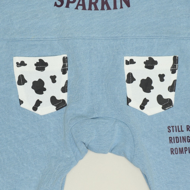 前後で楽しめるキャラクターデザインが可愛いサロペット風ロンパース♪