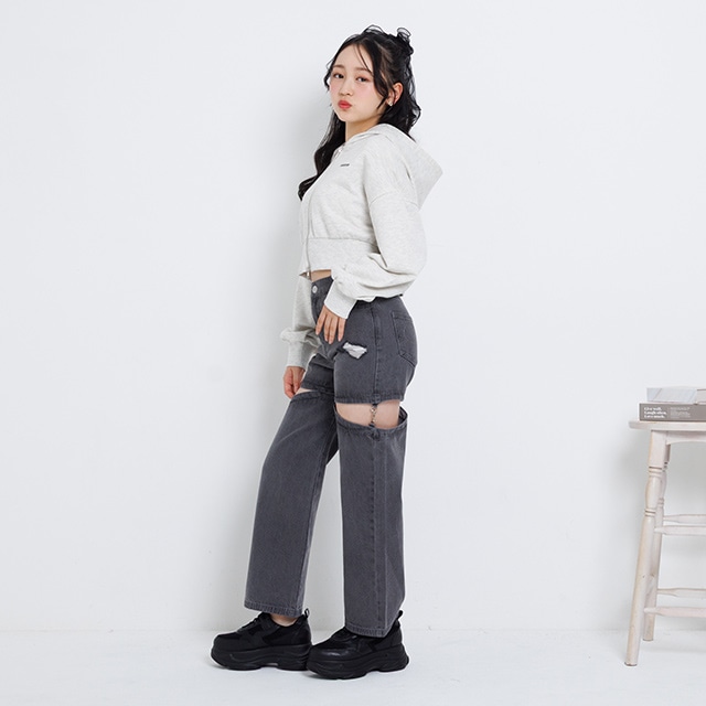 ダメージデザインで、グランジファッションやカジュアルコーデにおすすめ♪