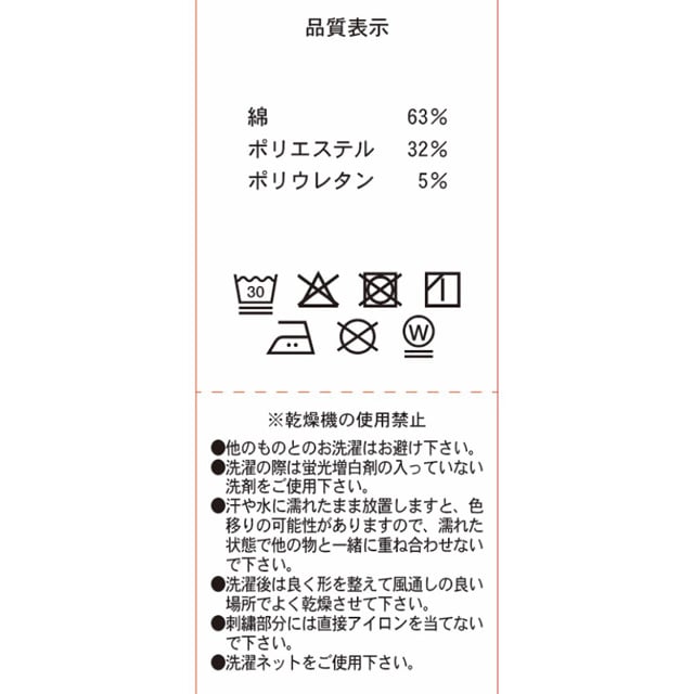 綿63%,ポリエステル32%,ポリウレタン5%