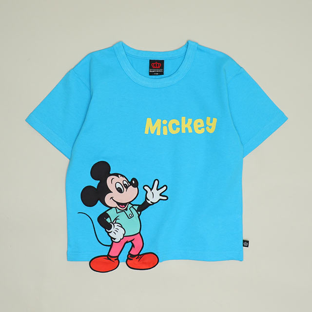 2/17NEW ディズニー 手描き風ロゴキャラクターワッペンTシャツ 1334K