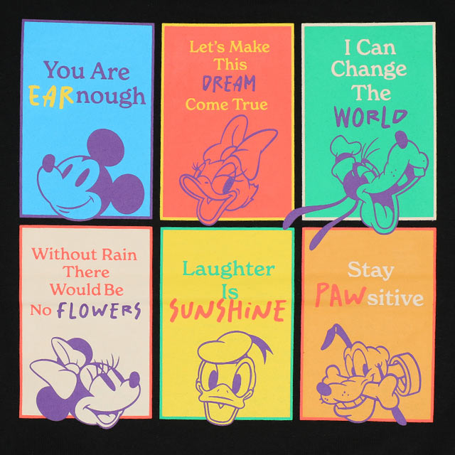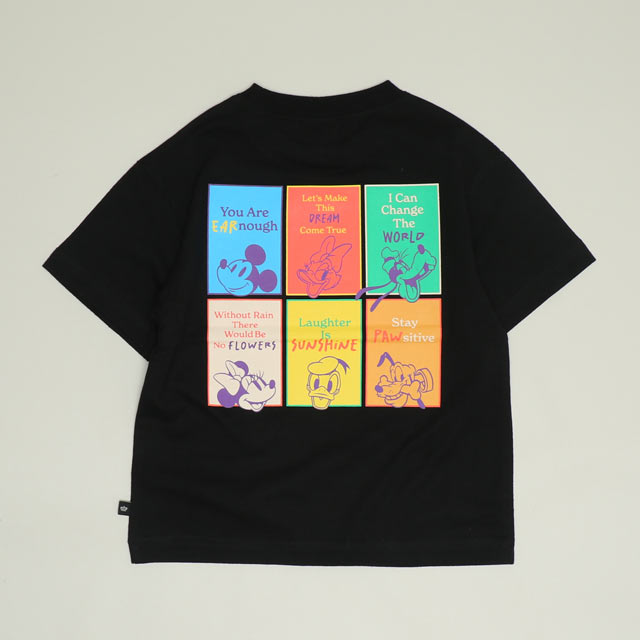 人気キャラクターが集合したカラフルなバックプリントが目を惹くTシャツ♪