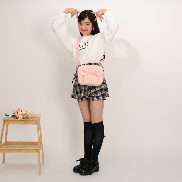 フロントの大きなリボンはポケットになっていて、く収納力も◎
