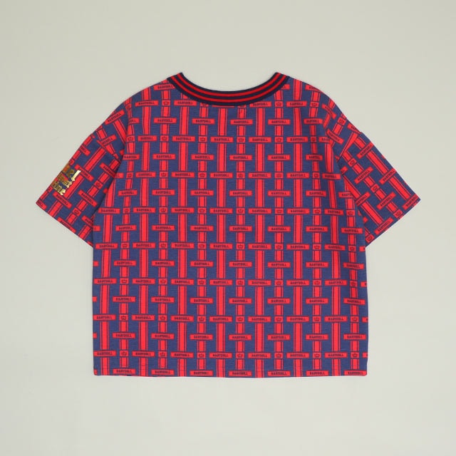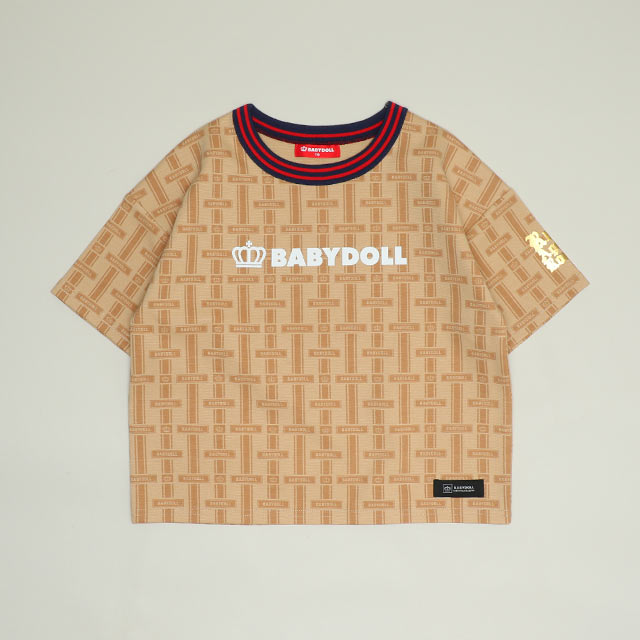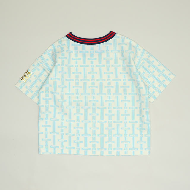 上品なモノグラム総柄と襟のライン入りリブがハイブランド感を演出する半袖Tシャツ♪