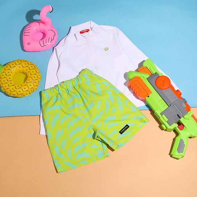速乾性のある生地で、海や川、プールはもちろん汚れがつきにくく普段の外遊びにも大活躍◎