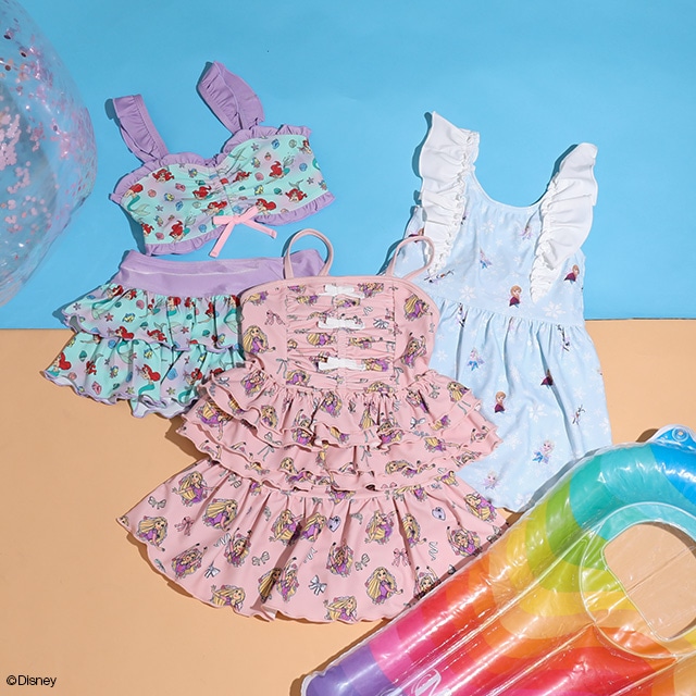 フリルやリボンをたっぷりあしらった、とびきりガーリーなディズニープリンセスの水着★