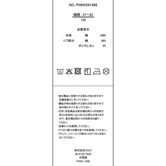 本体:綿100%リブ部分:綿96%ポリウレタン4%