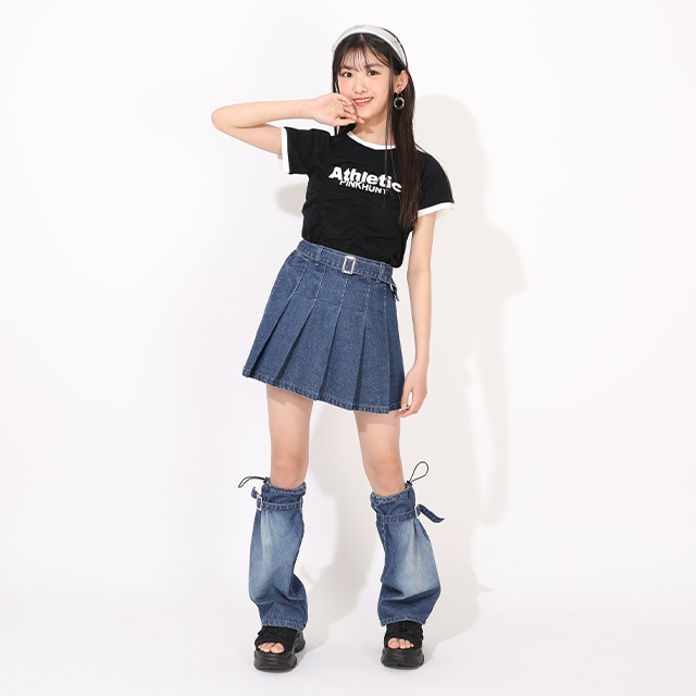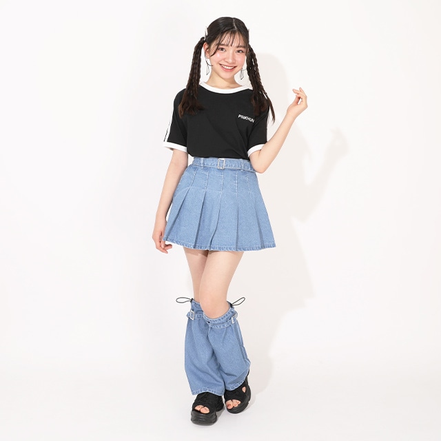 3/25NEW PINKHUNT レッグウォーマー付きデニムスカート 1501K