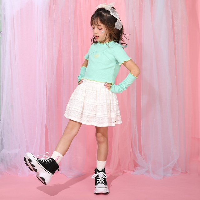 やわらかくチクチクしにくいレース素材&ウエストゴム仕様なので、お着替えも楽ちん◎