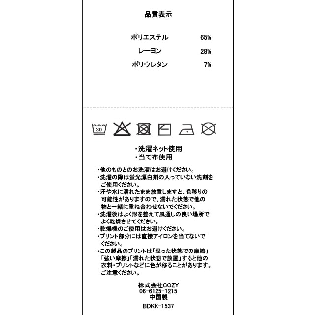 ポリエステル65%レーヨン28%ポリウレタン7%