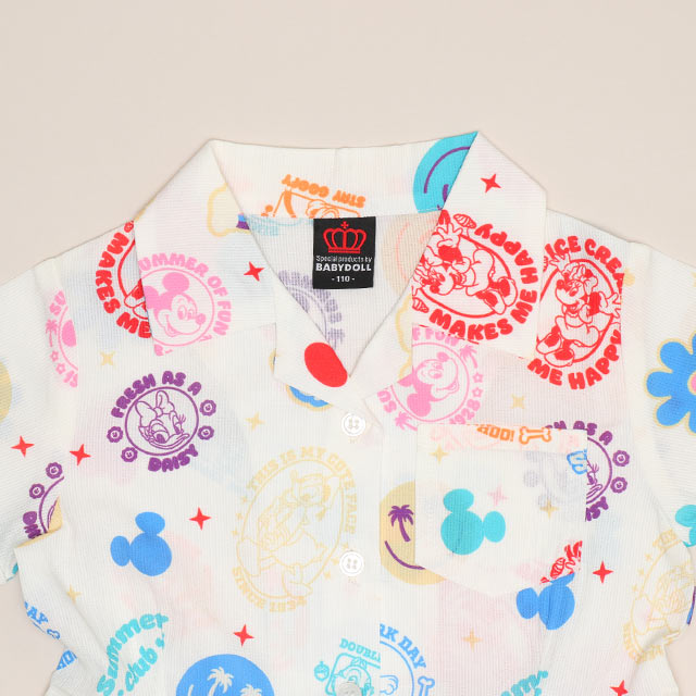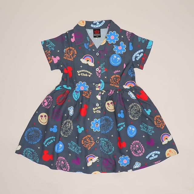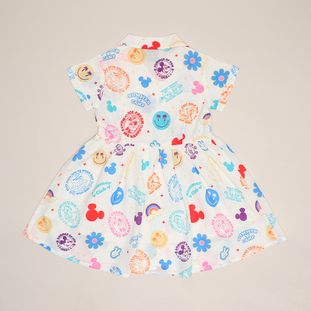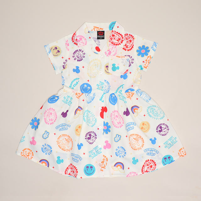 ポップなアイコンの総柄とオープンカラーが夏らしいリゾートワンピース♪