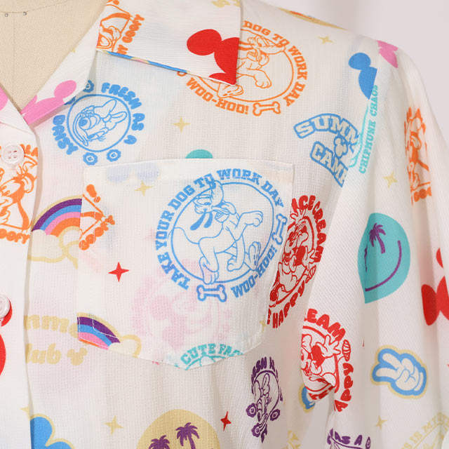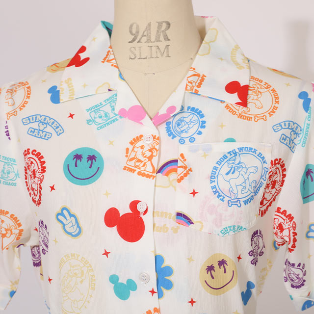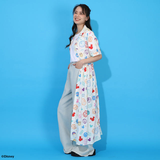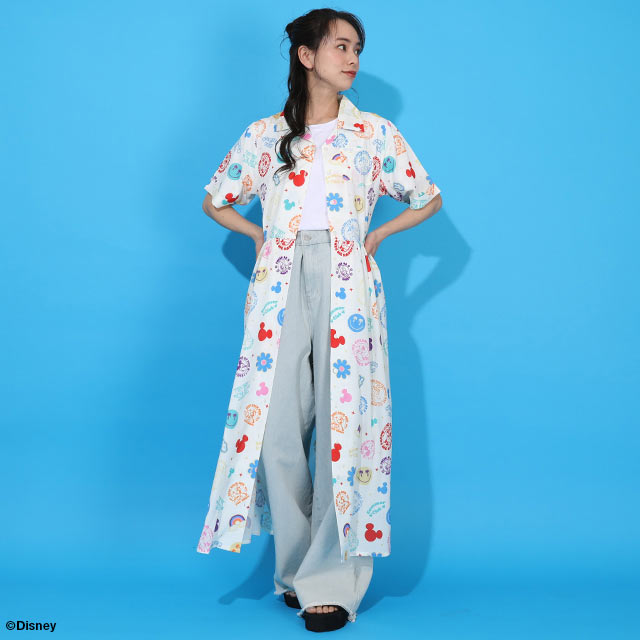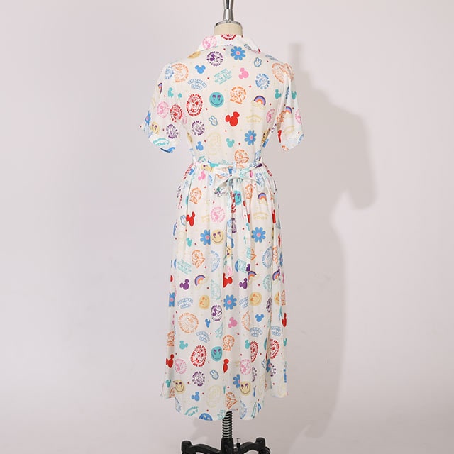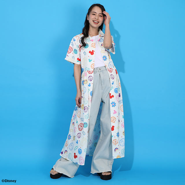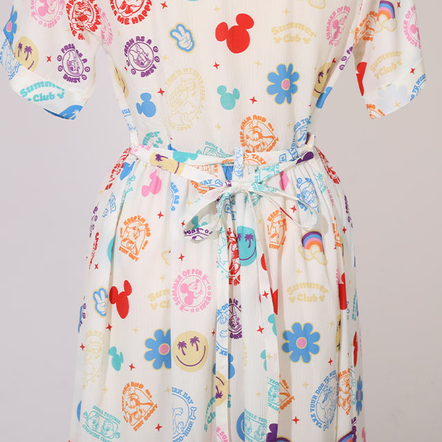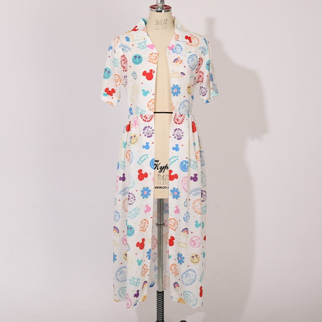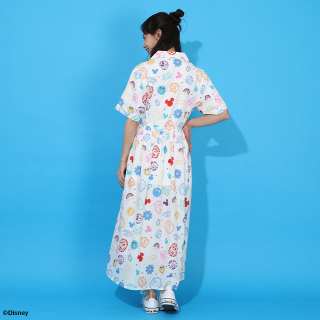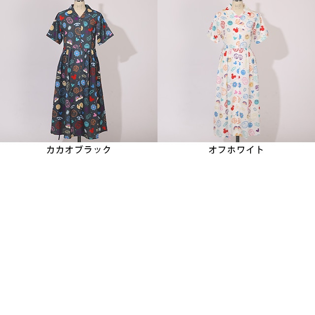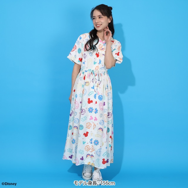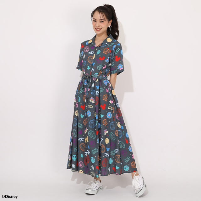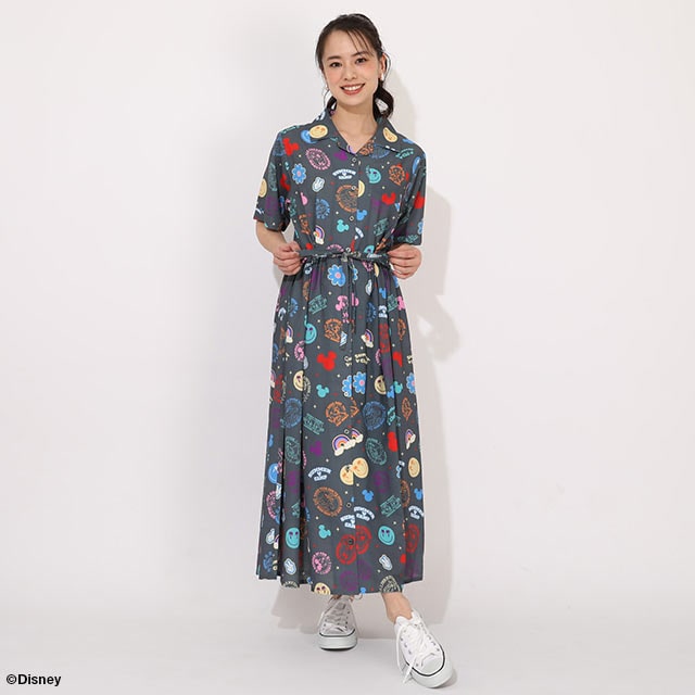 ポップなアイコンの総柄とオープンカラーが夏らしいリゾートワンピース♪