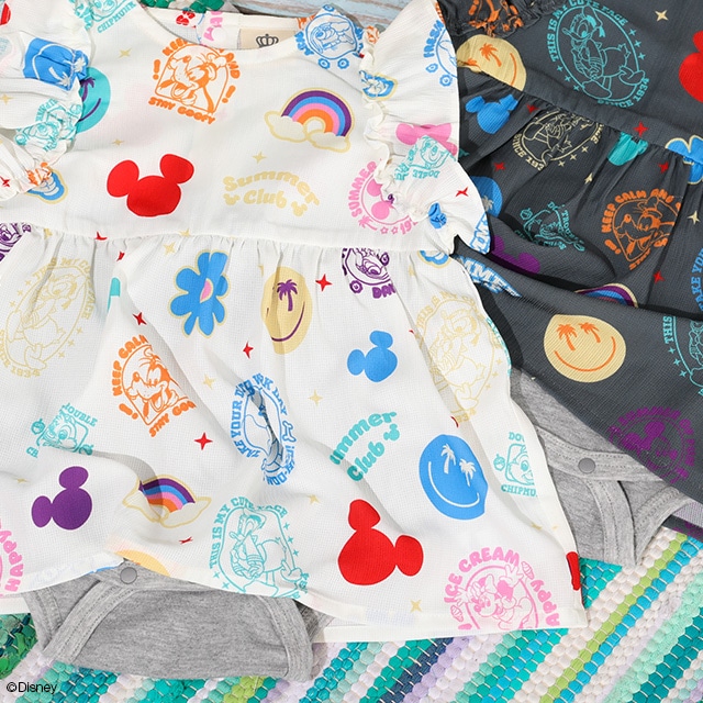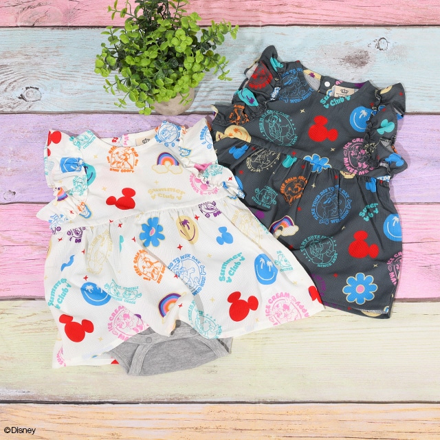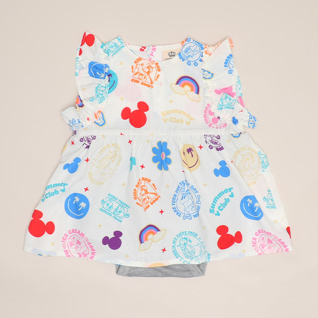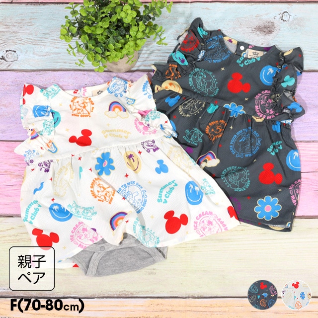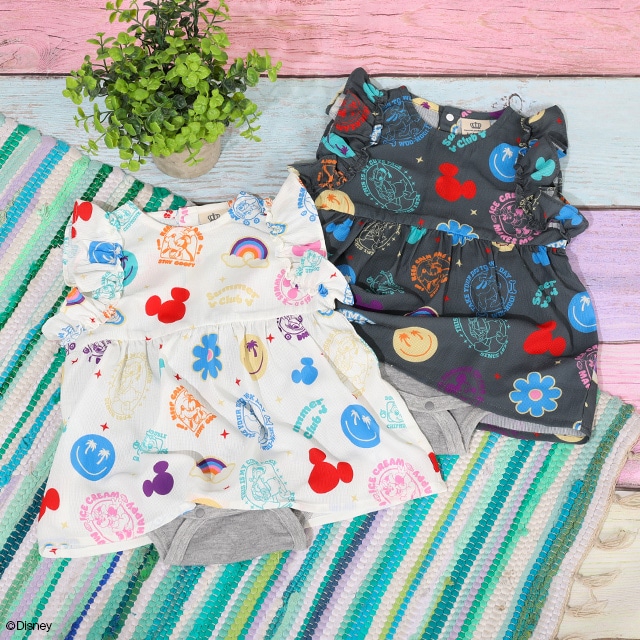 4/13NEW ディズニー リゾート総柄シャーリングロンパース 1601B