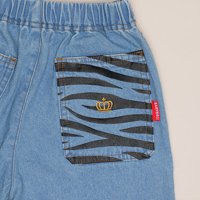 やわらかいデニム素材なので動きやすく、ウエストゴム仕様でお腹周りもラクラク♪