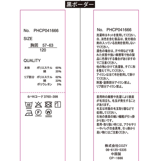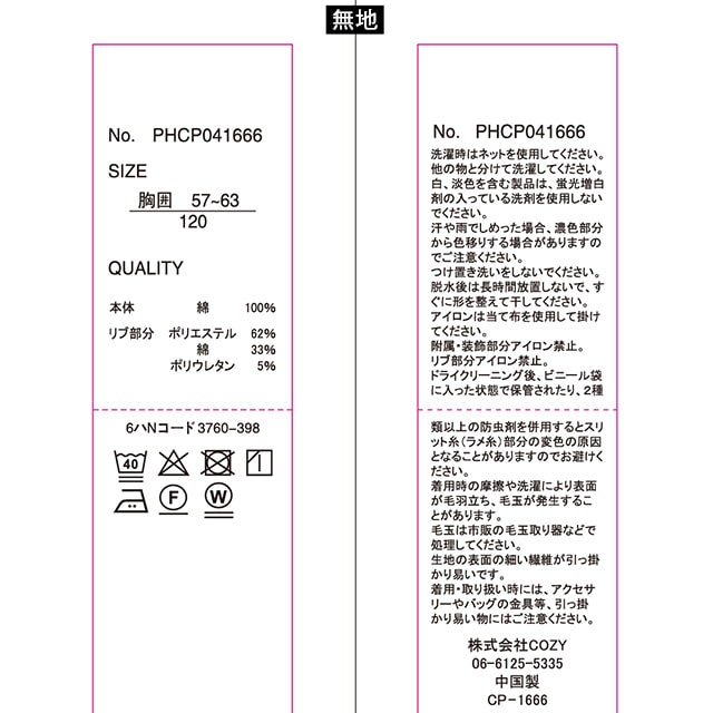 リブ部分:ポリエステル62%,綿33%,ポリウレタン5%