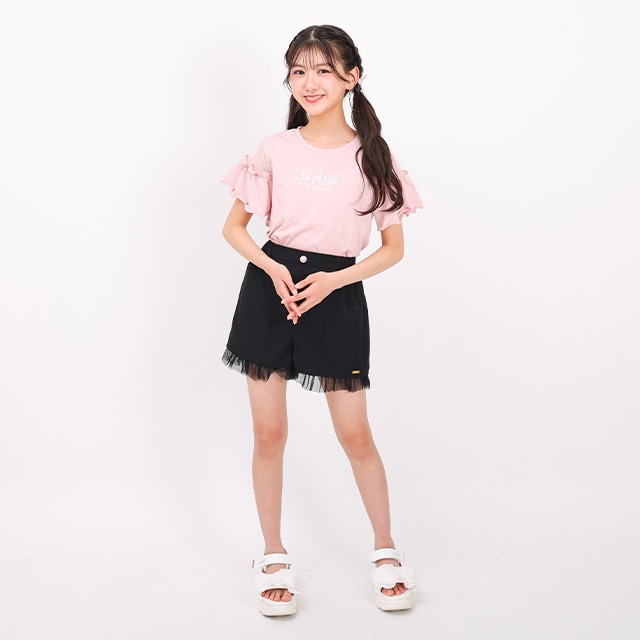 フロントのパール付き刺繍が、ガーリーさをプラス◎