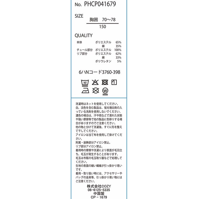 リブ部分:ポリエステル62%,綿33%,ポリウレタン5%