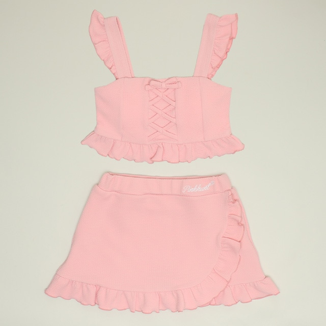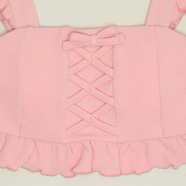 前:編み上げ+リボン(飾り) 後ろ:シャーリング ボトムス:2WAYトリコット