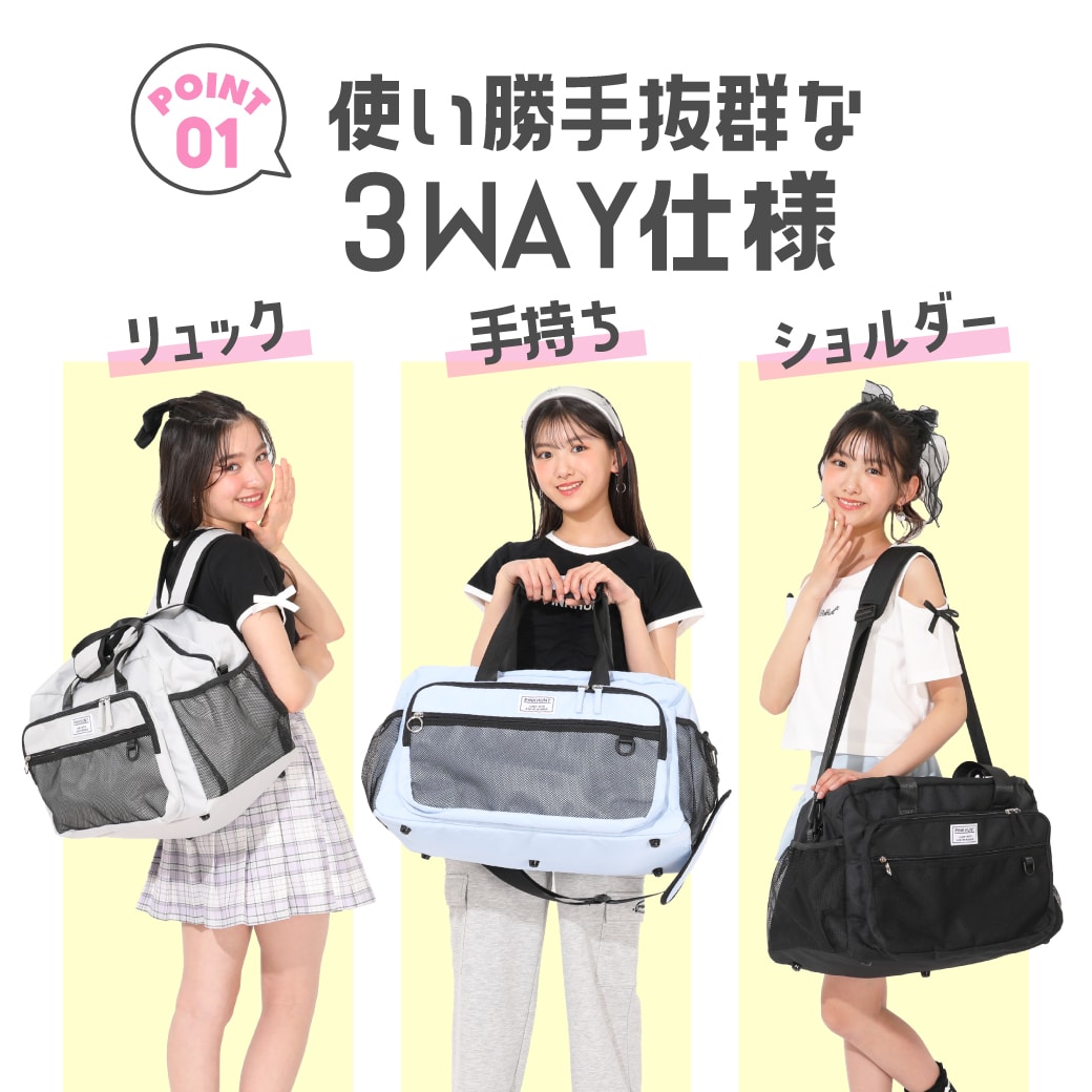 リュック・手持ち・ショルダーと、シーンに合わせて使える3way仕様◎