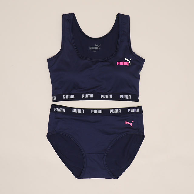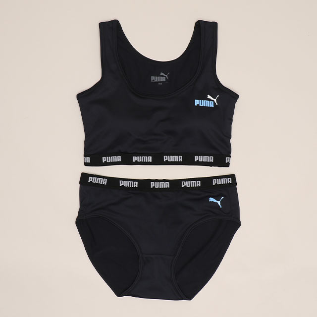 人気スポーツブランド「PUMA」のガールズ用ハーフトップ&ショーツの上下セット。