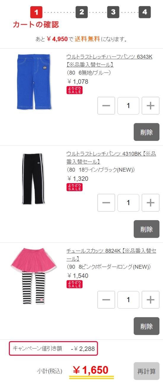 <対象商品を3点ご購入で1,650円(税込)のセール中に対象商品を4点購入>