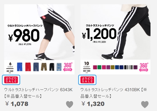 よりどりセールの対象商品には以下のように、『よりどりSALE』というアイコンが表示されています。